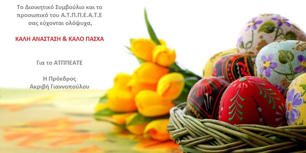 Category: ΑνακοινώσειςApril 11, 2023Tags: ΚΑΛΟ ΠΑΣΧΑ 2023Post navigationPreviousPrevious post:ΑΝΑΚΟΙΝΩΣΗ ΚΑΛΥΨΗΣ ΟΔΟΙΠΟΡΙΚΩΝ ΕΞΟΔΩΝ ΓΕΝΙΚΗΣ ΣΥΝΕΛΕΥΣΗΣ 13-05-2023NextNext post:ΠΡΟΣΚΛΗΣΗ ΓΕΝΙΚΗΣ ΣΥΝΕΛΕΥΣΗΣ ΤΟΥ ΑΤΠΠΕΑΤΕRelated postsΠασχαλινές ΕυχέςApril 14, 2025ΧΡΙΣΤΟΥΓΕΝΝΙΑΤΙΚΕΣ ΕΥΧΕΣDecember 24, 2024ΕΥΧΕΣ ΓΙΑ ΚΑΛΗ ΑΝΑΣΤΑΣΗ ΚΑΙ ΕΥΤΥΧΙΣΜΕΝΟ ΠΑΣΧΑMay 4, 2024ΕΥΧΕΣ ΓΙΑ ΚΑΛΕΣ ΓΙΟΡΤΕΣ ΚΑΙ ΕΥΤΥΧΙΣΜΕΝΟ ΝΕΟ ΕΤΟΣDecember 22, 2023ΕΝΗΜΕΡΩΣΗ ΓΙΑ ΤΗΝ ΕΠΑΝΑΛΕΙΤΟΥΡΓΙΑ ΤΟΥ ΚΛΑΔΟΥ ΥΓΕΙΑΣ Τ.Υ.Π.Α.Τ.Ε.November 21, 2023ΓΕΝΙΚΗ ΣΥΝΕΛΕΥΣΗ ΚΑΘΟΛΙΚΗ ΨΗΦΟΦΟΡΙΑOctober 22, 2023