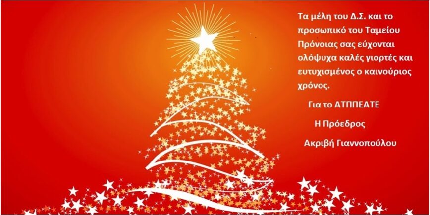 Καλές Γιορτές! Με εκτίμηση Η ΠΡΟΕΔΡΟΣ ΤΟΥ Δ.Σ. ΑΚΡΙΒΗ ΓΙΑΝΝΟΠΟΥΛΟΥ Category: Uncategorised, Uncategorized, ΑνακοινώσειςDecember 23, 2021Post navigationPreviousPrevious post:ΕΥΧΕΣ ΓΙΑ ΚΑΛΗ ΑΝΑΣΤΑΣΗ ΚΑΙ ΚΑΛΟ ΠΑΣΧΑNextNext post:ΣΑΣ ΕΥΧΟΜΑΣΤΕ ΚΑΛΟ ΚΑΛΟΚΑΙΡΙ – ΚΑΛΕΣ ΔΙΑΚΟΠΕΣRelated postsΠασχαλινές ΕυχέςApril 14, 2025ΧΡΙΣΤΟΥΓΕΝΝΙΑΤΙΚΕΣ ΕΥΧΕΣDecember 24, 2024ΕΥΧΕΣ ΓΙΑ ΚΑΛΗ ΑΝΑΣΤΑΣΗ ΚΑΙ ΕΥΤΥΧΙΣΜΕΝΟ ΠΑΣΧΑMay 4, 2024ΕΥΧΕΣ ΓΙΑ ΚΑΛΕΣ ΓΙΟΡΤΕΣ ΚΑΙ ΕΥΤΥΧΙΣΜΕΝΟ ΝΕΟ ΕΤΟΣDecember 22, 2023ΕΝΗΜΕΡΩΣΗ ΓΙΑ ΤΗΝ ΕΠΑΝΑΛΕΙΤΟΥΡΓΙΑ ΤΟΥ ΚΛΑΔΟΥ ΥΓΕΙΑΣ Τ.Υ.Π.Α.Τ.Ε.November 21, 2023ΓΕΝΙΚΗ ΣΥΝΕΛΕΥΣΗ ΚΑΘΟΛΙΚΗ ΨΗΦΟΦΟΡΙΑOctober 22, 2023